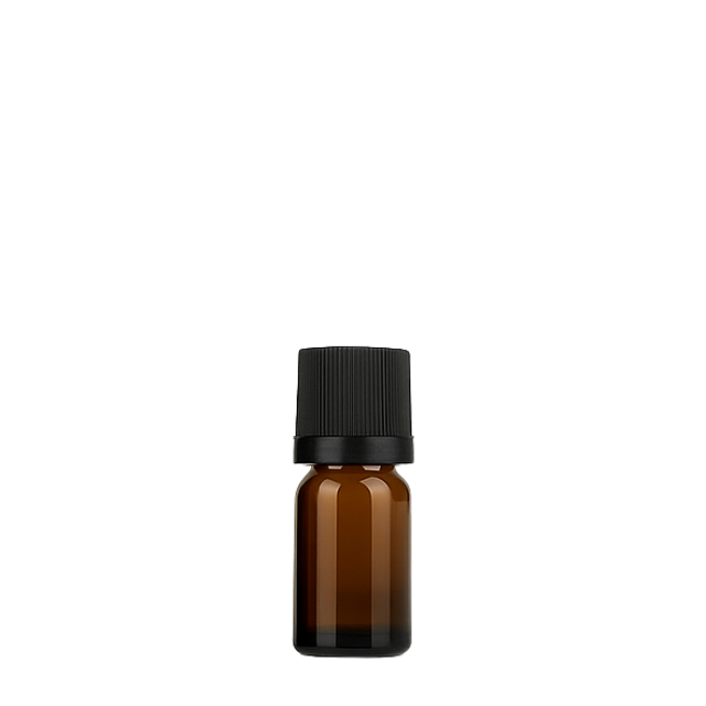 Frasco em vidro âmbar espesso, com tampa gotejador preta estriada tipo Child Proof com lacre, que proporciona maior segurança no manuseio e evita a abertura acidental por crianças. Ideal para armazenar óleos essenciais, sinergias ou fórmulas que exigem proteção extra.