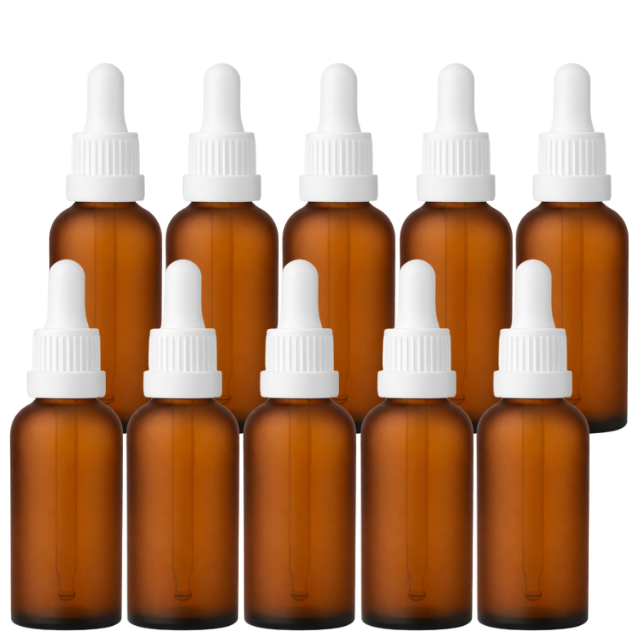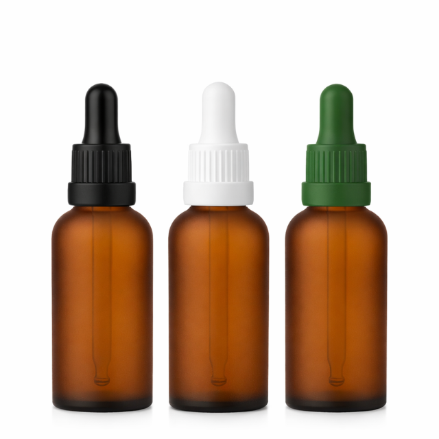 Frasco âmbar fosco com conta-gotas PREMIUM R18 - 30 ml (unitário ou kit) - Preto / Branco / Verde
